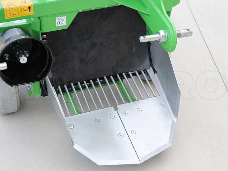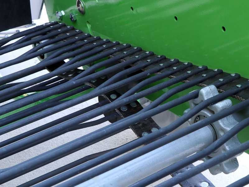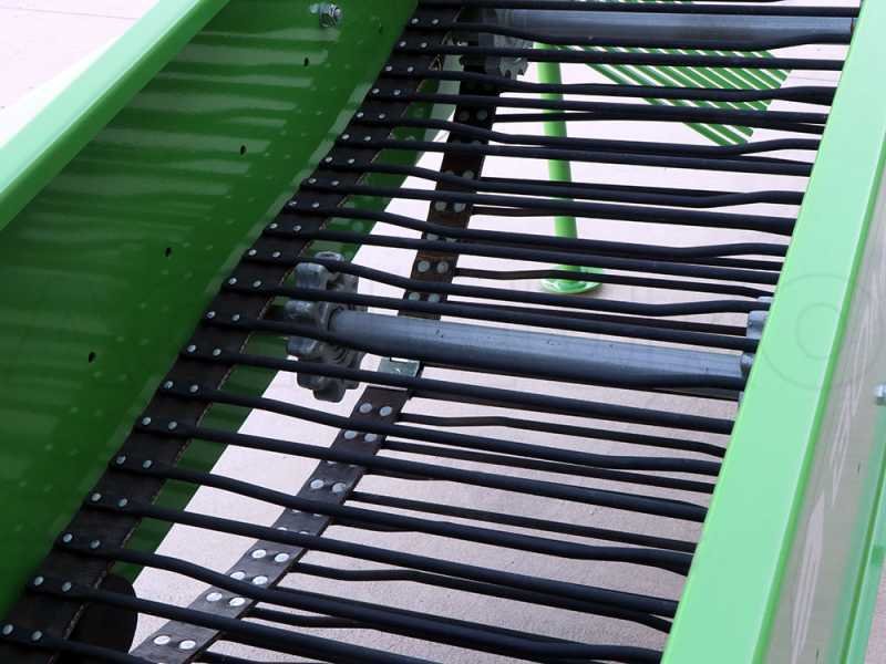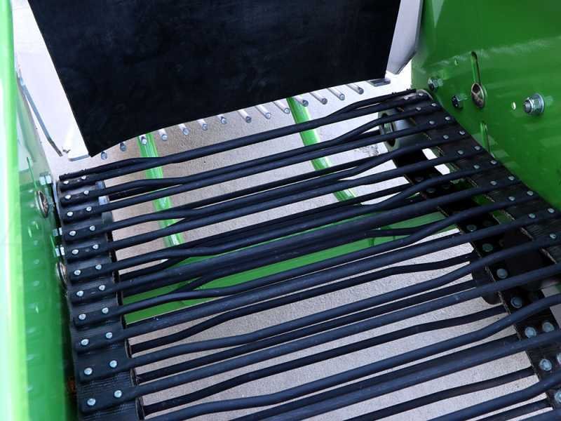 Dans la partie arrière de l’arracheuse, une grille dirige les pommes de terre extraites vers la crête derrière l’arracheuse. La grille de glissement permet le positionnement des tubercules de pomme de terre de manière à limiter les dommages causés par les pneus du tracteur lors du passage suivant.